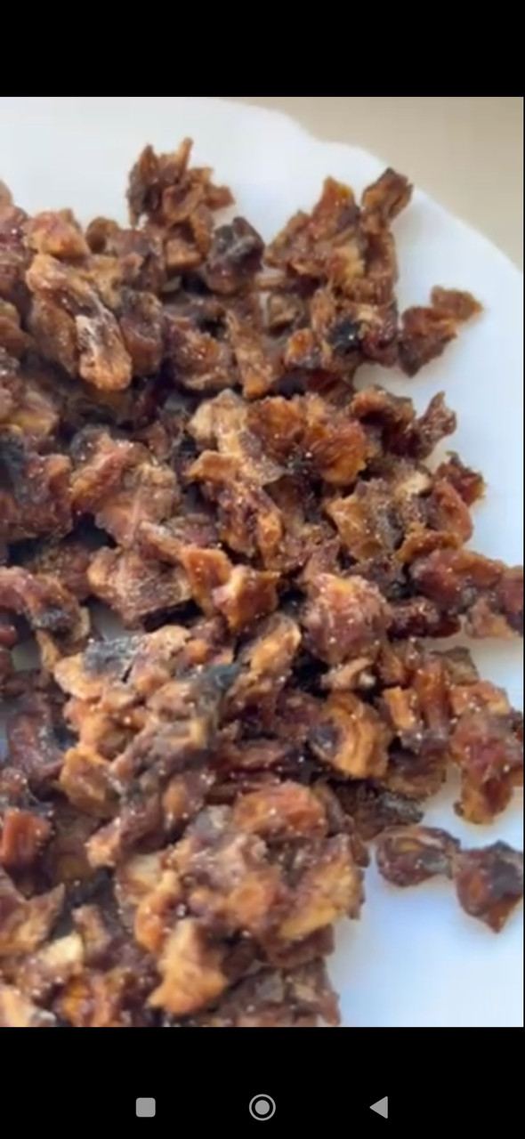 У в'яленому вигляді зберігається більша кількість вологи, плоди більш м'які та об'ємні. Їх добре використовувати для приготування пирогів, сирників, каш. Сушений плід є тонкі слайси - чіпси, вони хрусткі і невагомі, добре виступають як снек