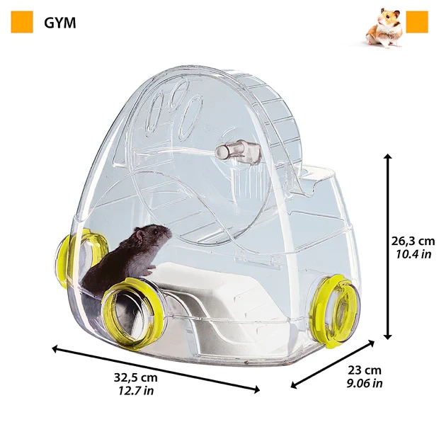 Однією з головних проблем гризунів, що живуть в неволі, є малорухливий спосіб життя. Згодом, вихованець починає набирати зайву вагу і страждати від серцево-судинних захворювань. Вирішити подібну проблему здатний спеціальний модульний будиночок від Ferplast (Ферпласт) під назвою Gym. Потрапивши в нього, Ваш улюбленець точно не буде сидіти на місці. У будиночку є драбинка, по якій він буде пересуватися і колесо для бігу, яке підвищить фізичну активність. Він продуманий для належної циркуляції повітря і повністю прозорий, завдяки чому Ви завжди зможете тримати свого улюбленця під контролем. У будиночку передбачено 3 отвори, через які він може під'єднуватися до модульних кліток або тунелів. Виконаний з якісного, нетоксичного пластику.